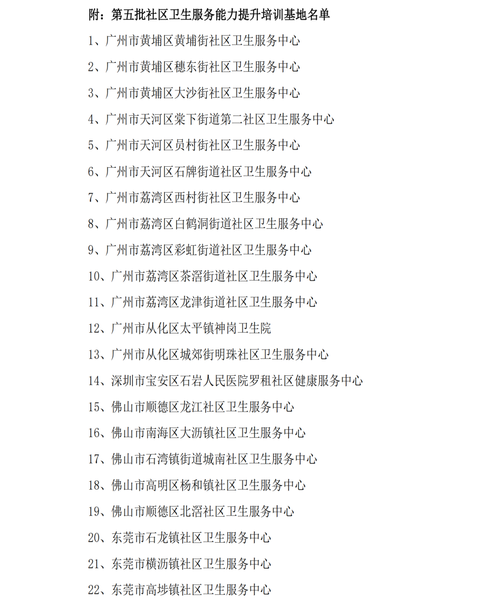 关于公布广东省基层卫生协会社区卫生服务能力提升培训基地遴选结果的通知(第五批)