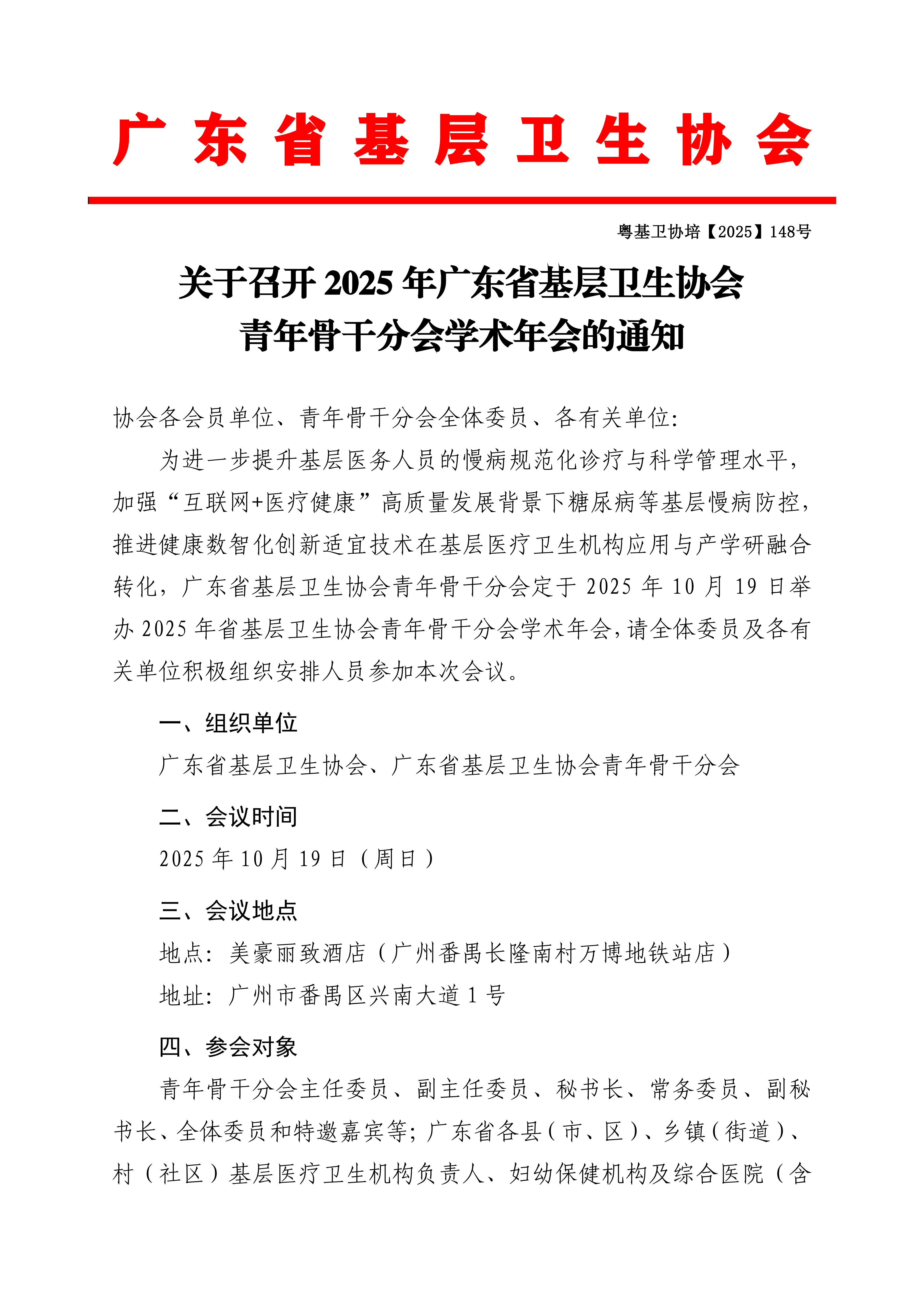 关于召开2025年广东省基层卫生协会青年骨干分会学术年会的通知