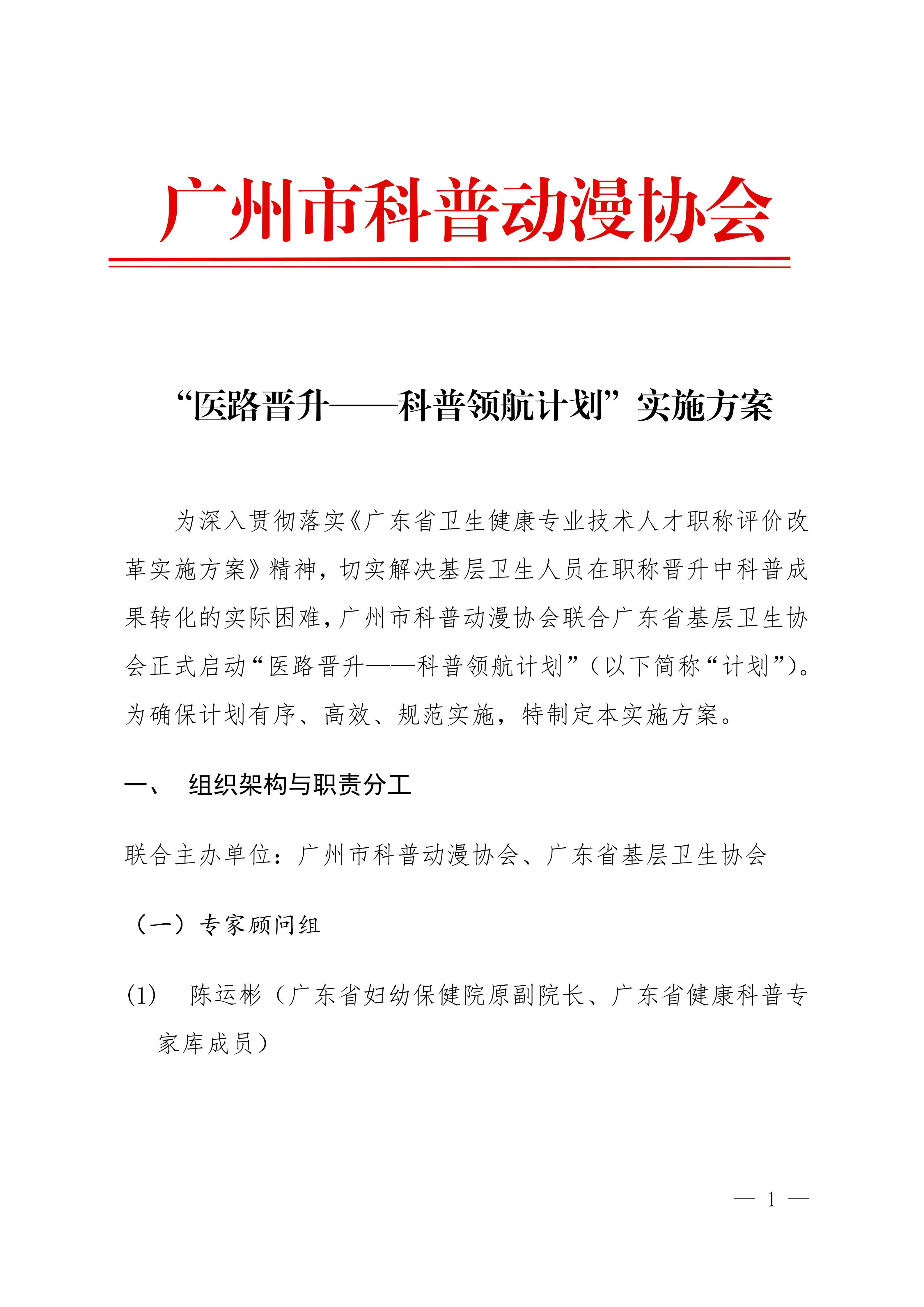 粤基卫协联合主办的“医路晋升—科普领航计划”实施方案