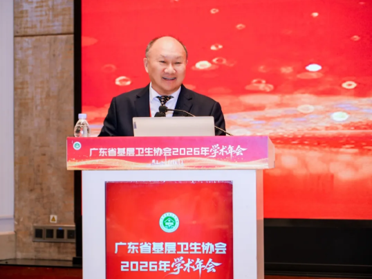 广东省卫生健康委员会基层卫生健康处许九林同志出席年会并致辞。他首先代表省卫生健康委基层处,向长期奋斗在基层一线的全体同仁致以衷心感谢。并指出,过去一年广东省基层卫生协会始终坚持“以基层为重点”“以人民健康为中心”的政策导向,围绕国家和省卫生健康工作部署,不断探索基层卫生健康改革新举措。2026年是“十五五”开局之年,也是广东省推动“百千万工程”攻坚“五年显著变化”目标的关键之年。希望协会坚持党建引领、深入调研,真实反映一线难题;鼓励有条件的基层医疗机构拓展服务,探索社区看护式养老,真正实现从“以治病为中心”向“以健康为中心”转变。